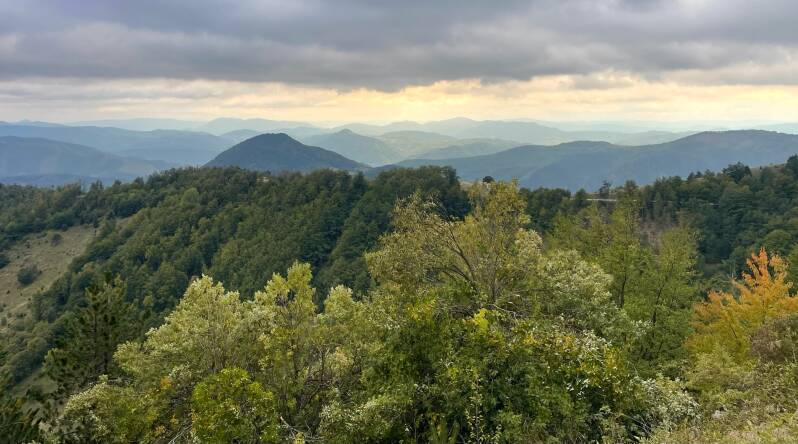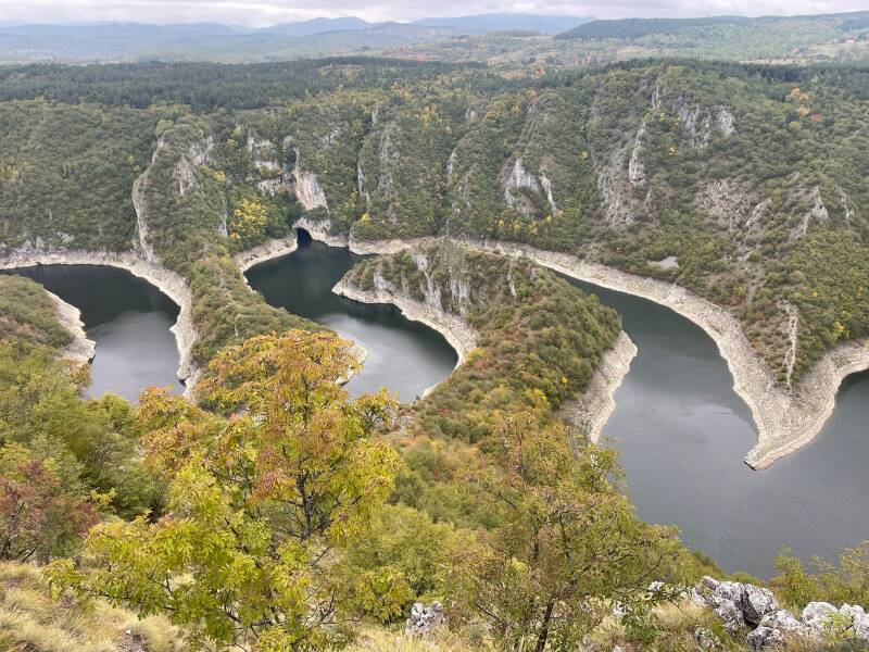 Das trüber Wetter, dass uns seit 3 Wochen verfolgt ist auch am nächsten Morgen noch da 🙈. Der Aussichtspunkt Vidikovac Molitva bietet einen atemberaubenden Blick auf den Uvac und seine beeindruckenden Schleifen. Eine Weile haben wir den Aussichtspunkt ganz für uns allein und beobachten fasziniert die majestätischen Fischadler im Flug. Es ist unglaublich, wie diese Vögel die Thermik für ihre eleganten Manöver nutzen – wir sind einfach sprachlos. Schade für die Bilder, mit Sonne wären die Herbstfarben viel leuchtender.