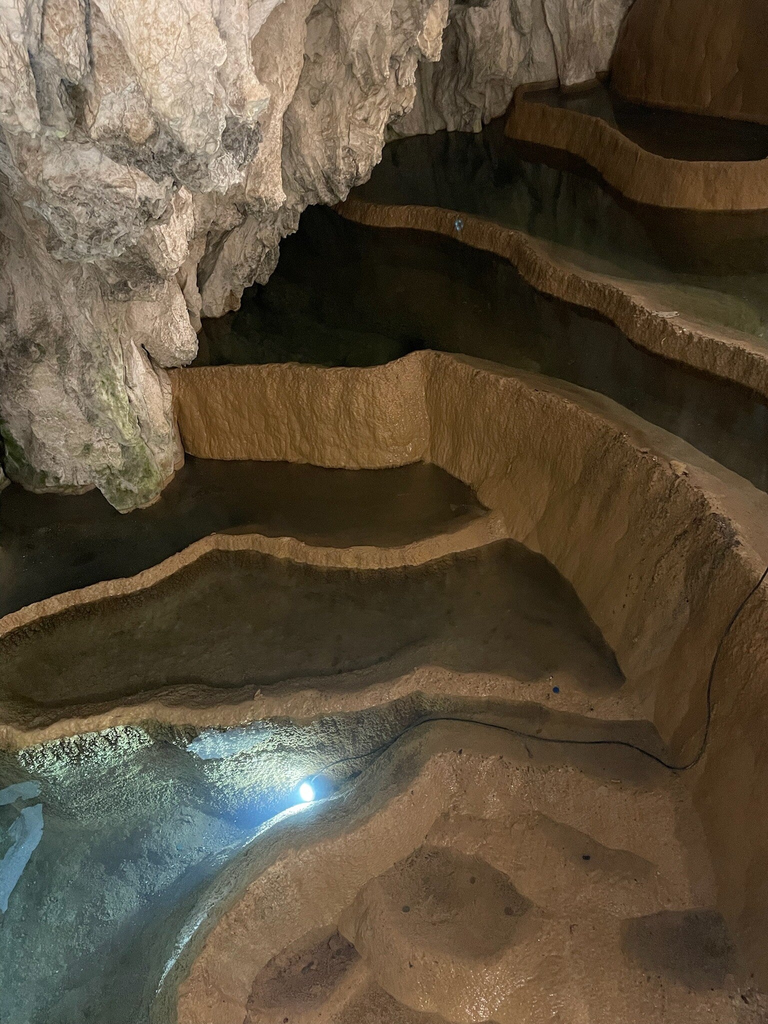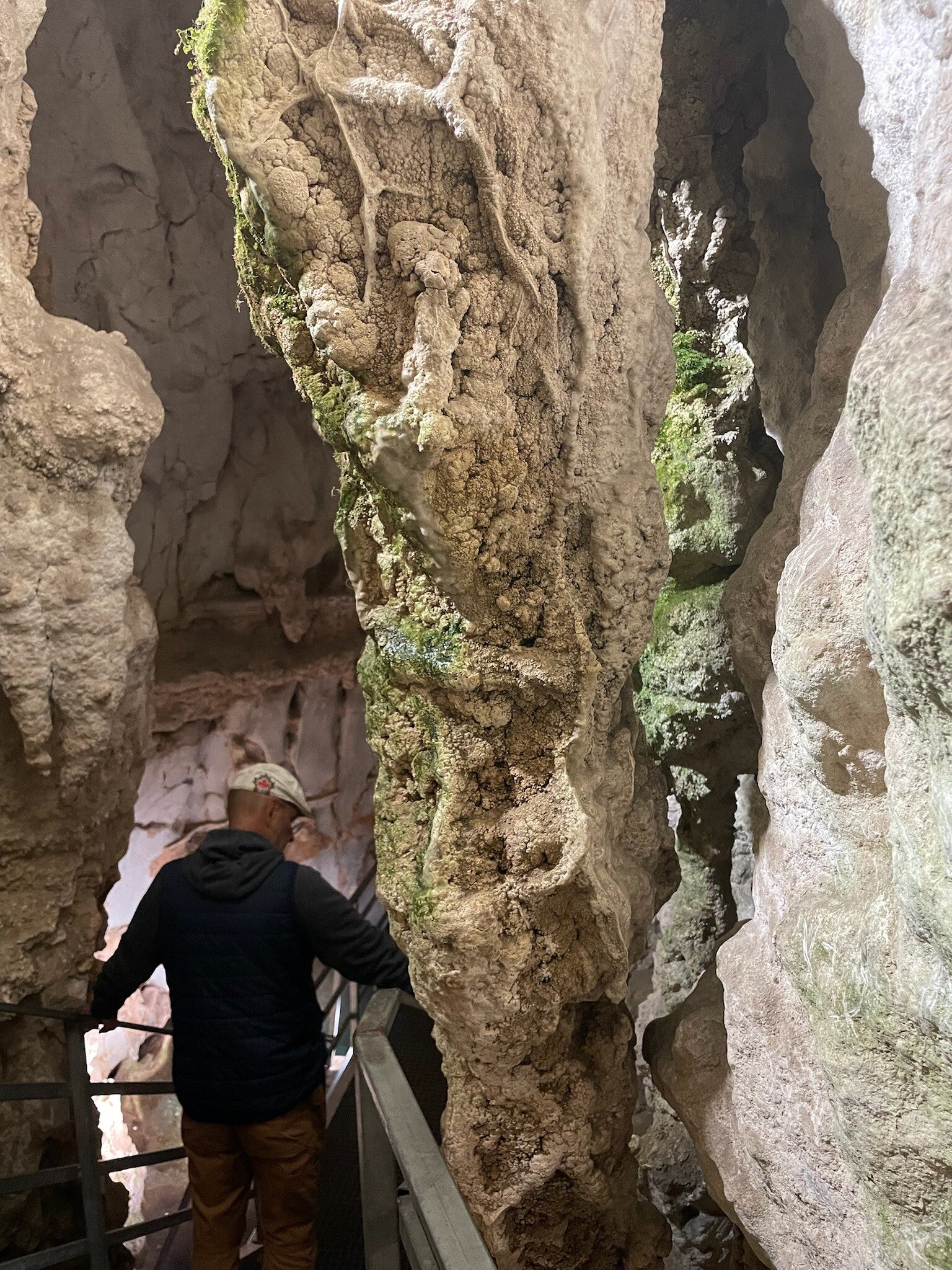 Die Eintrittspreis für die kleine Kalksteinhöhle, die gut gepflegt und schön ausgeleuchtet ist, beträgt nur 3.50 € Der 300m lange Fussweg zur Höhle ist nicht barrierefrei und hat die Dame Mitte 30ig vor uns zum Ausspruch bewegt: "Hier sterbe ich"! Das Lächeln können wir uns nicht verkneifen und gestorben ist sie natürlich auch nicht! 😝