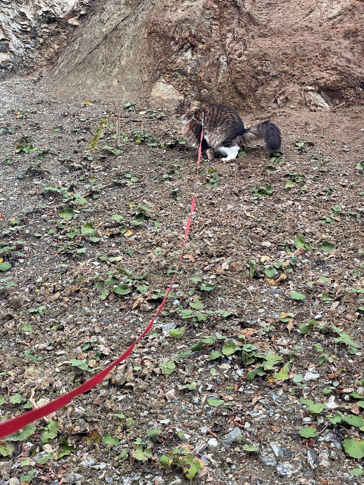 Nach den Bieren und mit vollem Bauch fahren wir wieder in unseren schönen Steinbruch – genug Abenteuer für einen Tag 🤭. Außer für Milo – er genießt es auf seine ganz eigene Art draußen zu sein 😂 💩.