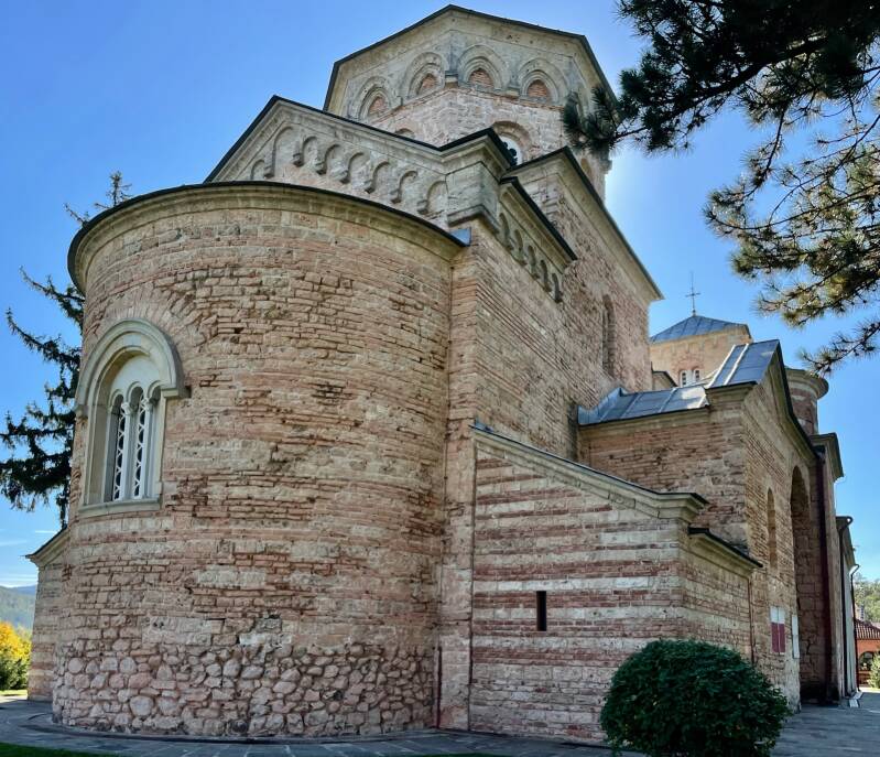 Am frühen Nachmittag machen wir uns auf den Weg zum Kloster Žiča. Die gesamte Anlage verströmt eine wohltuende Ruhe, und die schlichte Bauweise der Kirche beeindruckt durch ihre zeitlose Eleganz. Von den drei Klöstern, die wir besichtigt haben, ist jedes auf seine Weise absolut sehenswert.