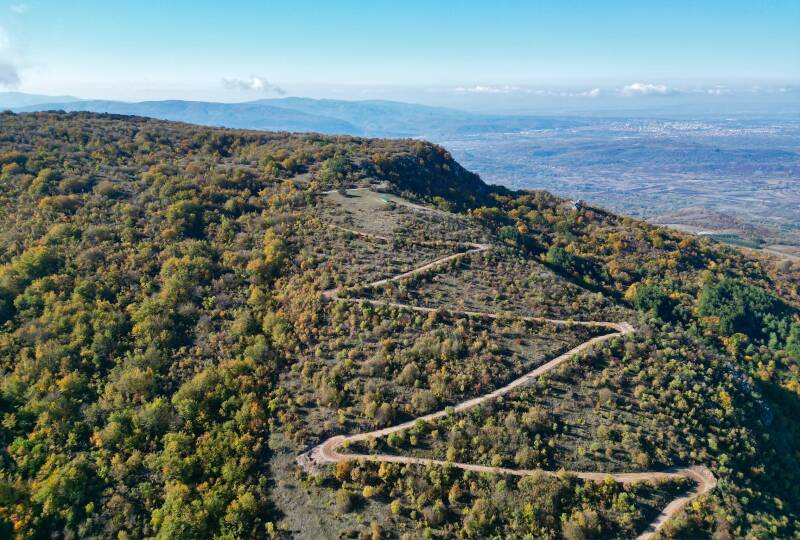 Die Route nach Nordmazedonien von unserem aktuellen Standort läuft entlang einer Hügelkette und teils im Wald. Zur Alternative steht eine grössere Strasse mit einem Umweg von 100km.