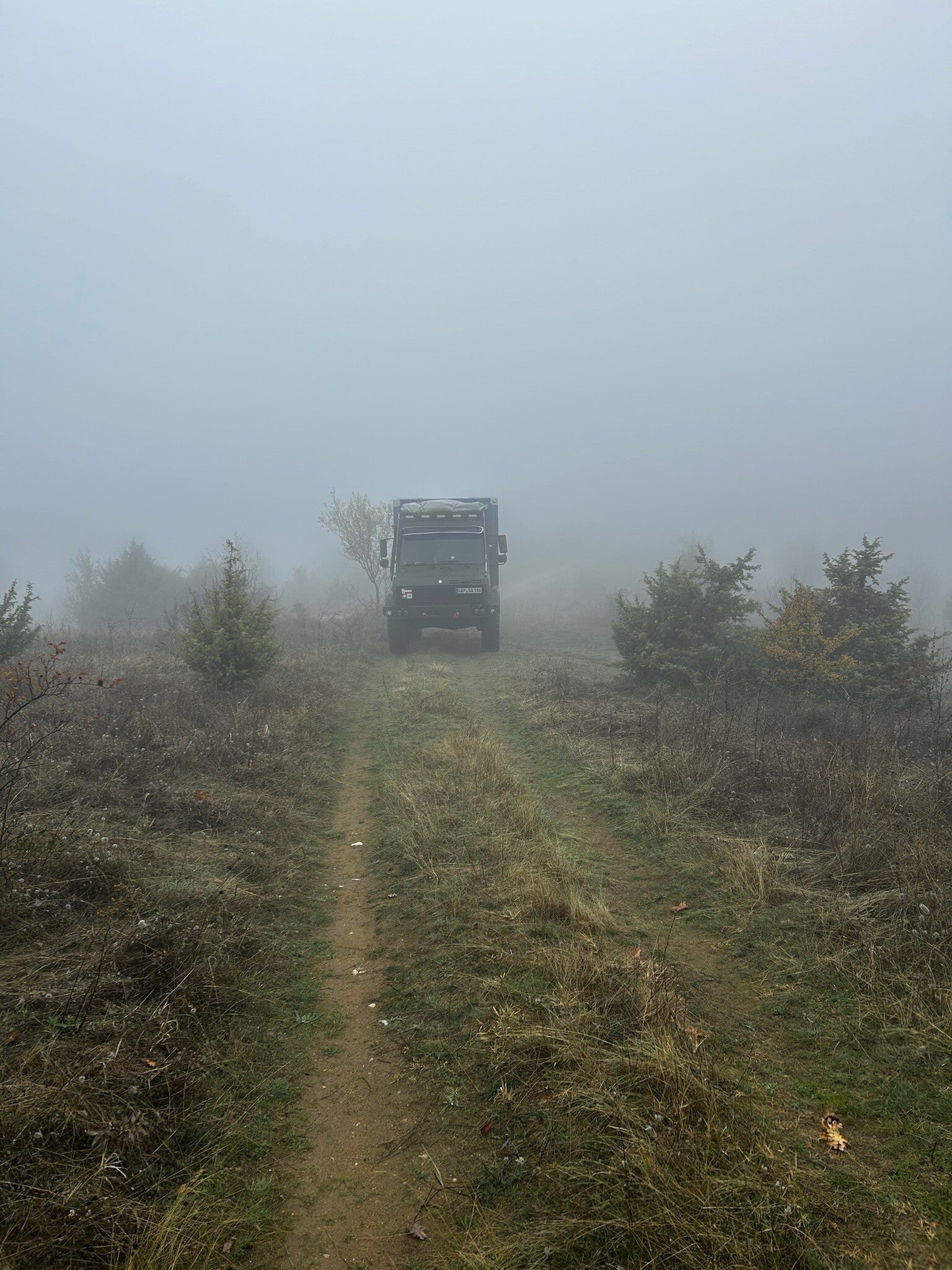 Rund 20km vor der Nordmazedonischen Grenze biegen wir rechts ab und finden eine super coolen Platz - aber nur wenn man was sehen würde 😶🌫️🌁🌫️😶🌫️.