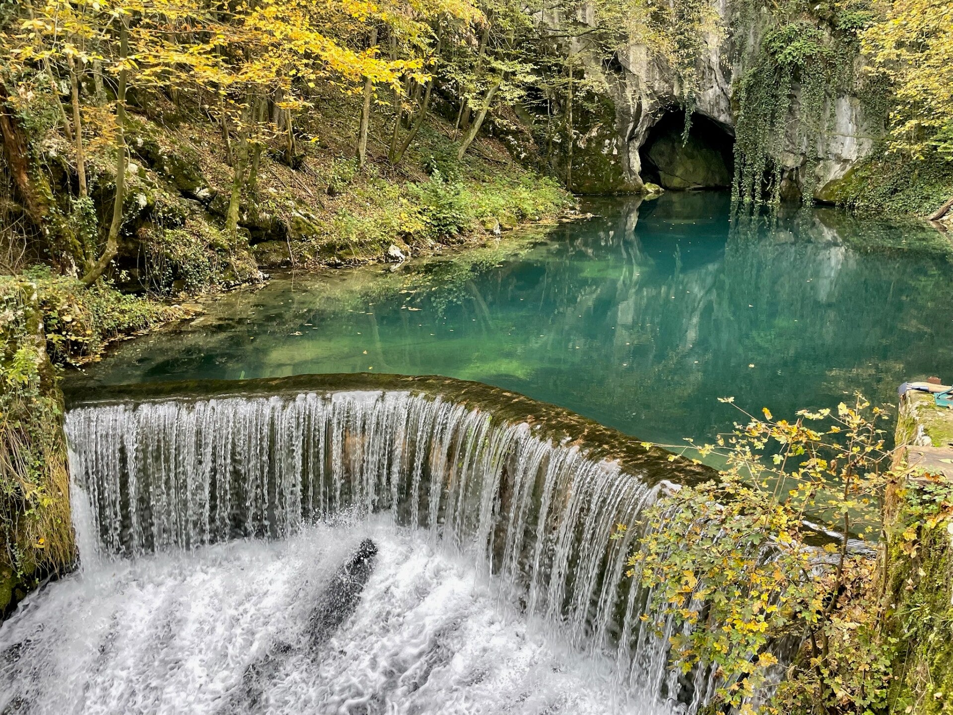 Wir fahren die kleine Strasse weiter und erreichen eine idyllische Quelle und das dazugehörige Fischrestaurant. Wir spazieren die wenigen hundert Meter zur Quelle und wie bereits in Blagaj 🇧🇦 strömt auch hier eine beeindruckende Menge Wasser aus der Höhle und bietet ein faszinierendes Naturschauspiel.