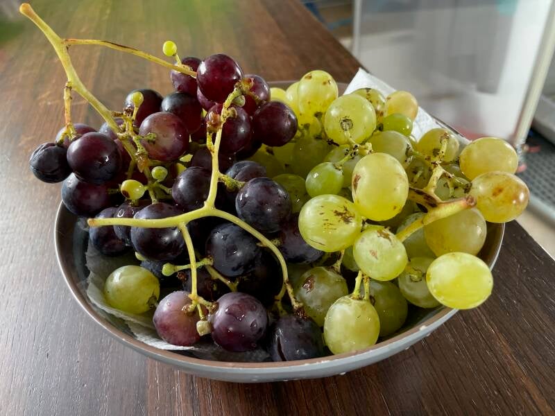 In Leskovac bleiben wir bei der Suche nach Eiern erfolglos, also versuchen wir unser Glück später in einem kleinen Laden. Martin kehrt mit zehn Eiern zurück, verpackt in einem Plastiksack. Der kleine, nostalgische Tante-Emma-Laden erinnert uns an frühere Zeiten. Kurzerhand investieren wir die letzten serbischen Dinar in weitere Lebensmittel und ein paar Snacks. Doch das Einkaufserlebnis endet nicht hier: Wir werden großzügig beschenkt – mit roten und weißen Trauben sowie zwei Äpfeln. Serbische Gastfreundschaft, die wir soviel erleben durften, in ihrer reinsten Form ❣️🥰.