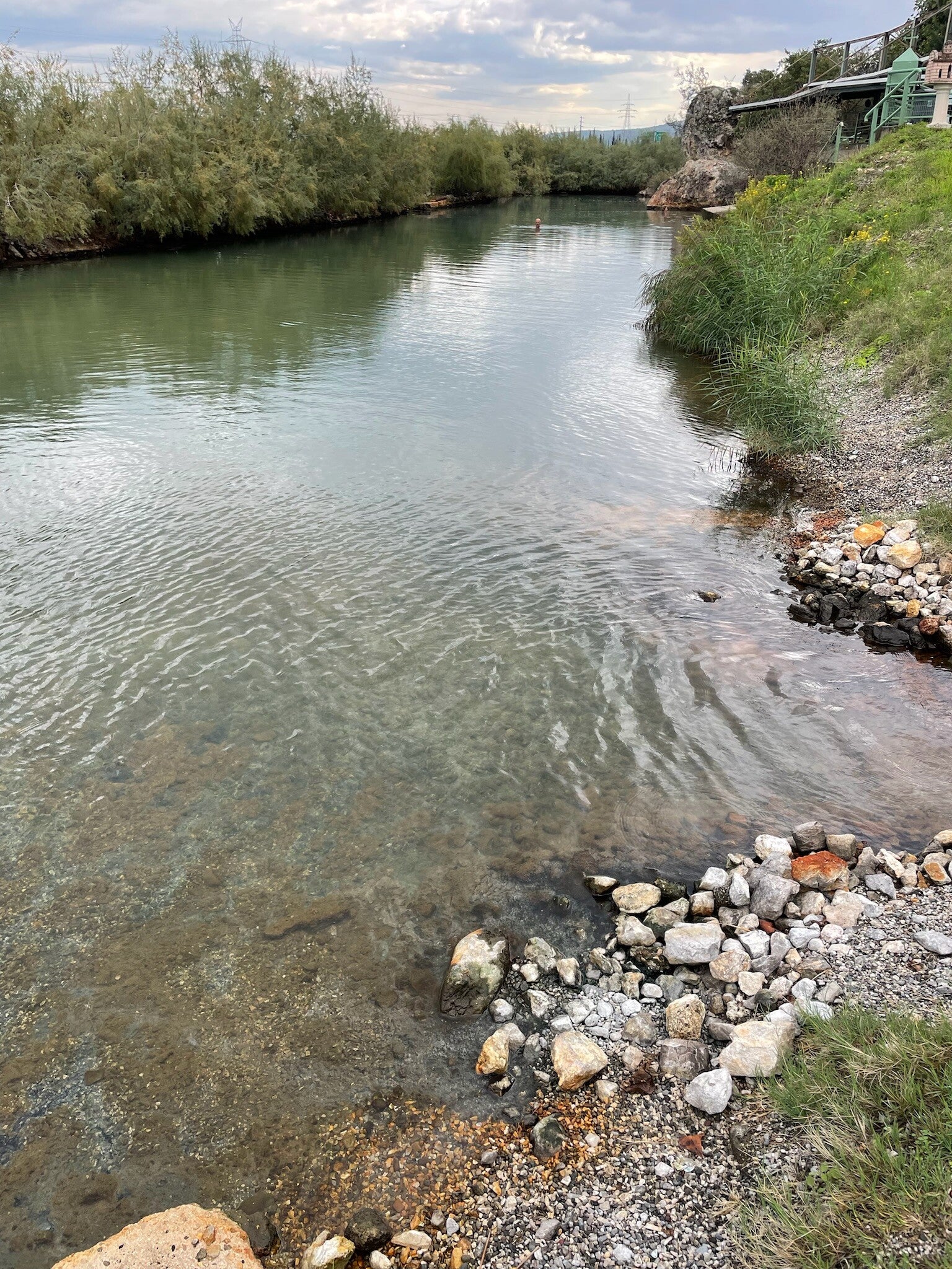 Danach gehts weiter zu den Thermopylen. Ein Engpass an Land zwischen Meer und Gebirge. Auf dem einstigen Schlachtfeld gibt es neben Denkmälern und einem Museum auch heisse Quellen, welche wir zuerst ansteuern. Trotz leichtem Schwefelgeruch ist die 40ºC warme Badewanne ein absoluter Genuss. Die Quelle ist sehr sauber und eine Einheimische erzählt uns es gibt noch eine andere Quelle in der Nähe.