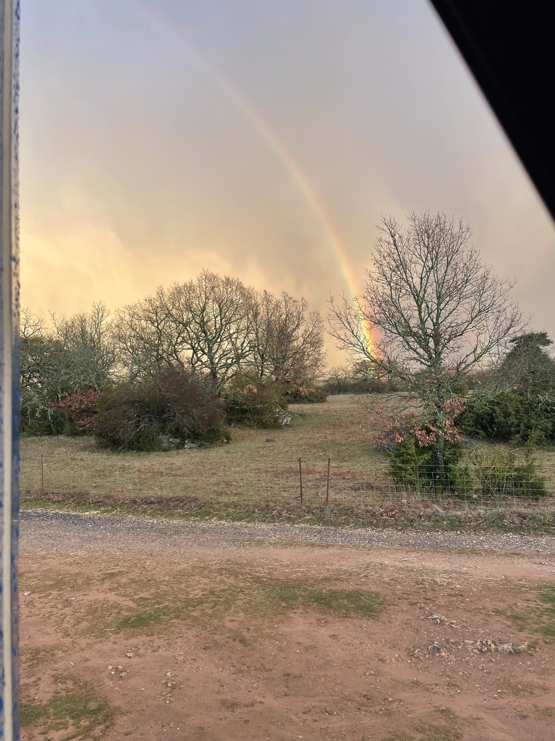 Bei strömendem Regen parken wir für unser nächstes Ziel ein, "kleine Schluchten" gefunden in Google Maps. Kurz vor dem Eindunkeln belohnt uns ein Regenbogen.