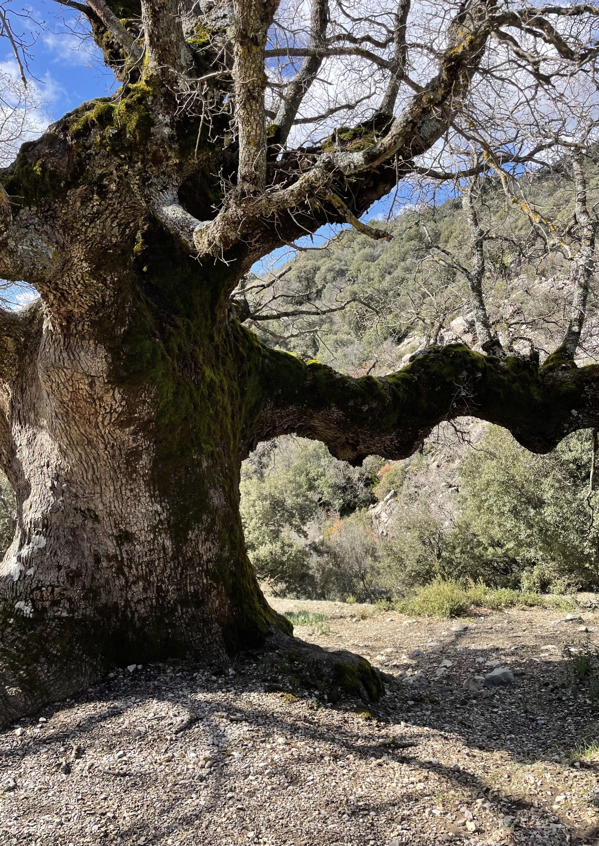 Die Sonne scheint und der gestrige Regenbogen ist immer noch Gesprächsthema 🌈 😝. Nach Spiegeleier mit Speck fahren wir weiter. Das Ziel ist der Quejigo del Amo del Carbón, eine Galleiche im Alter zwischen 500 und 1000 Jahren, auf 1300 müM. Diese Eichen wurden früher auf eine grobe Art beschnitten, um den Schnitt anschliessend im Meiler zu Holzkohle zu verarbeiten.