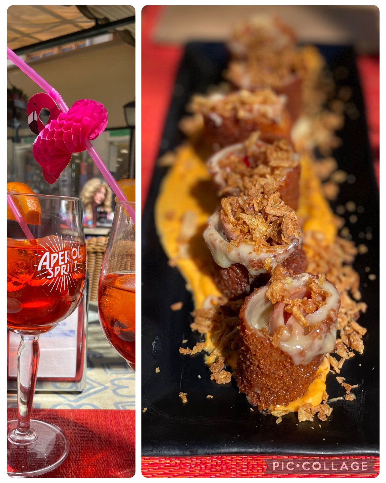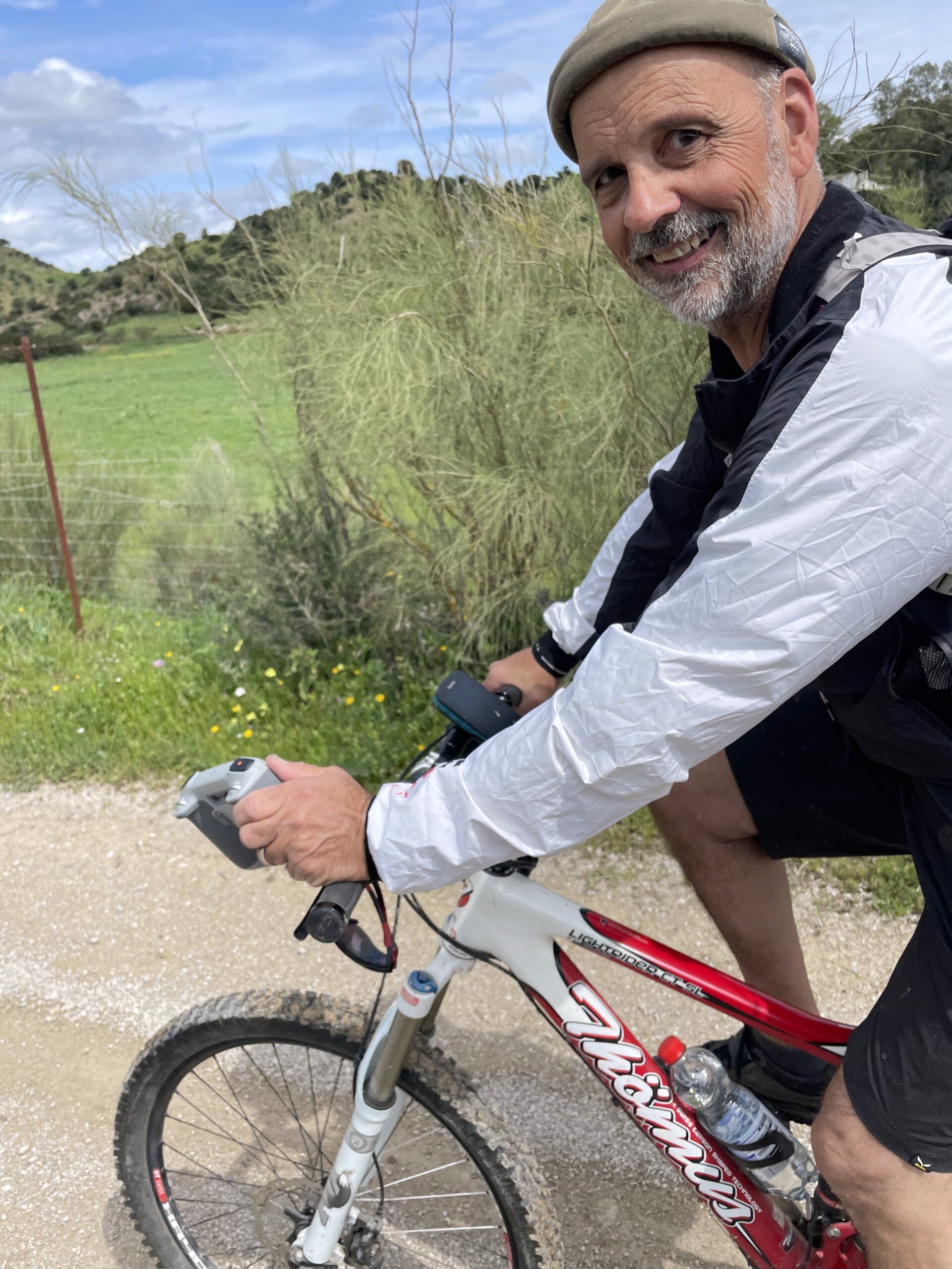In der Stadt angekommen, nimmt Martins schlechte Laune überhand, der "Grantlbär" nervt sich an den vielen Menschen. Ja gell, komisch hats in diesem Touristen-Hotspot viele Menschen 🤣. Gerlinde schreitet belustigt und unbeirrt weiter im Gewusel. Bei Flamenquin und Aperol Spritz ist wieder alles "gut". Flamenquin bedeutet wörtlich übersetzt "kleine Flamencotänzerin" 💃🏾. Über enge schmale Treppen tragen wir die Fahrräder hinauf zu einem Aussichtspunkt vis-a-vis der Alhambra und dann gehts durch schmale Gassen 250 Höhenmeter hoch zu MIMOG 🤪. Eine schöne und eindrückliche Stadt, dieses Granada mit der Sierra Nevada im Hintergrund.