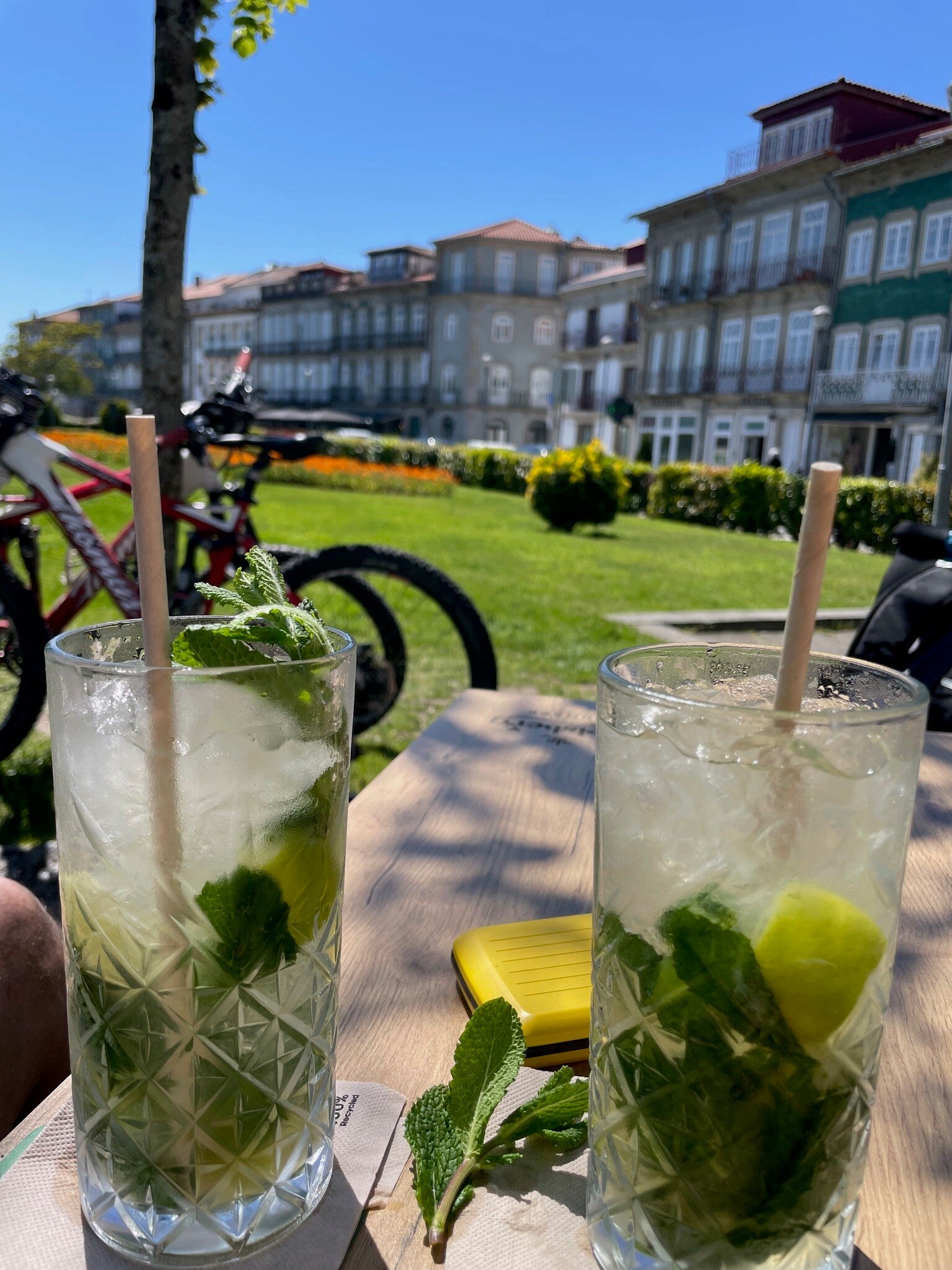 Am Nachmittag radeln wir jeweils nach Viana über die Ponte Eifel (Sieht aus wie ein horizontaler Eiffelturm), erkunden die Stadt und lassen es uns gut gehen. Das kleine Café an der Strandpromenade hat ausgezeichnete Mochitos. Auf unsere Tiere vergessen wir natürlich auch nicht 😻.